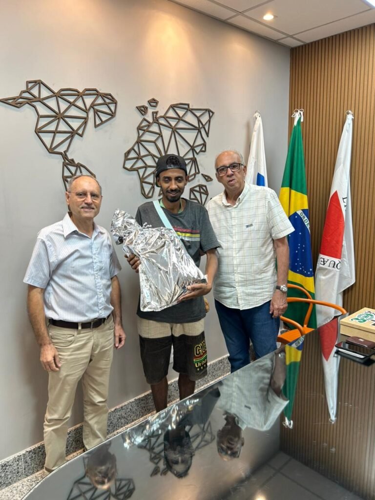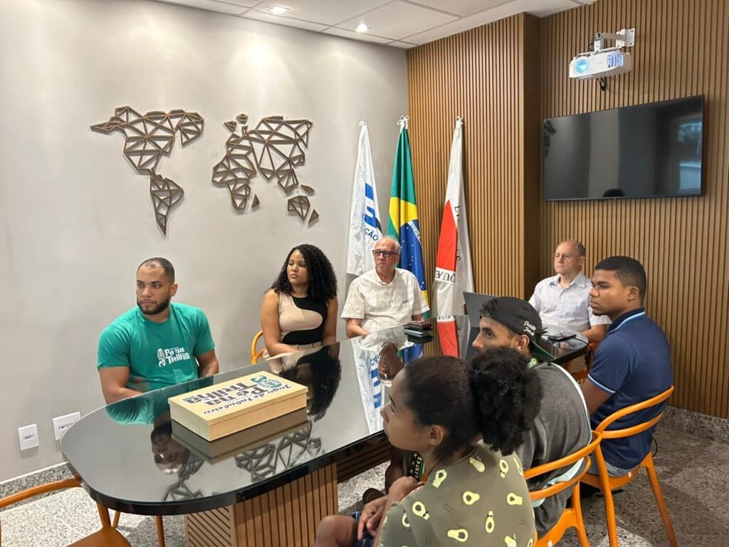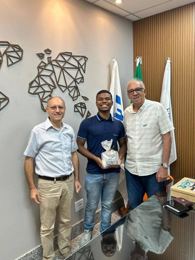 O presidente da FGPA e o presidente do Conselheiro Curador Sr. Carlos Eduardo Azeredo tiveram o prazer de receber hoje dia 09/10/2025 os jovens Abner Araujo Zolini, da cidade de Timóteo; Gabriel Henrique Ferreira de Ipatinga e Ruan Carlos Fortunato Silva Reis com sua esposa e filhinha também de Timóteo, todos participantes do Projeto Pulsar Jovem pelo Rio Doce, agraciados com equipamentos oferecidos pelo Sr. Carlos Eduardo.